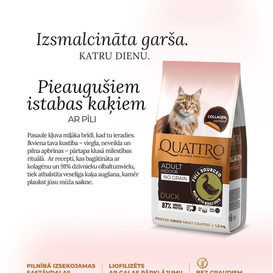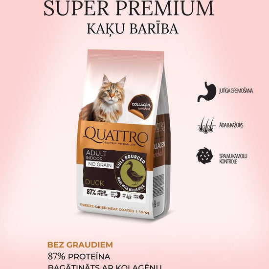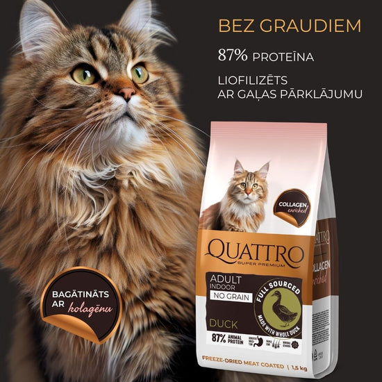 High digestibility products, exclusively made from whole duck as an excellent source of protein. Dedicated for indoor adult all breed cats.