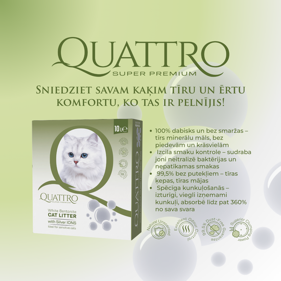 QUATTRO baltā bentonīta kaķu pakaiši ar sudraba joniem, 10L