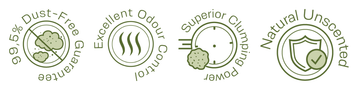 Līdz minimumam samazināts putekļu daudzums, kas izbirst, tīrot kasti, vai pielīp pie mājdzīvnieka ķepām.