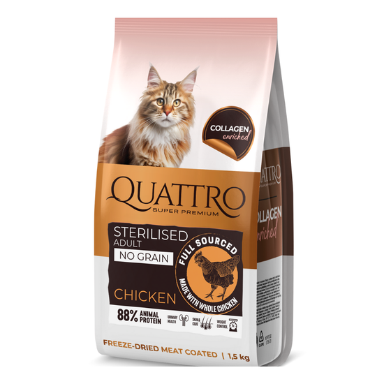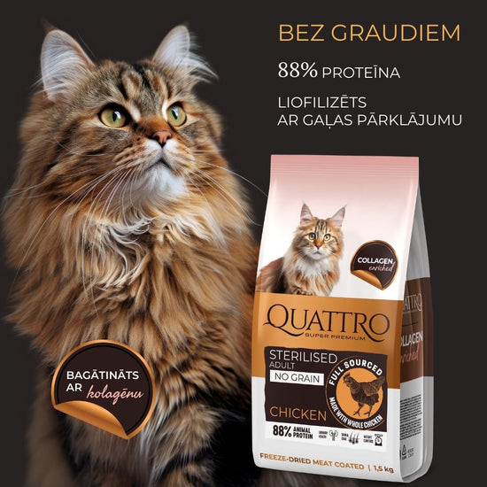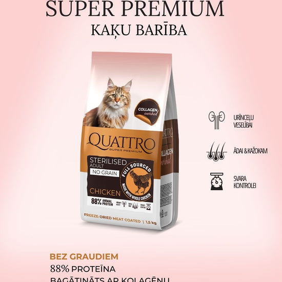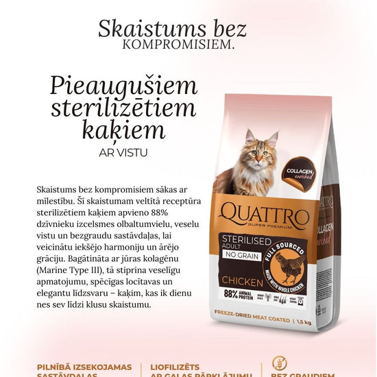 Quattro sausā kaķu barība ar vistas gaļu pieaugušiem sterilizētiem kaķiem